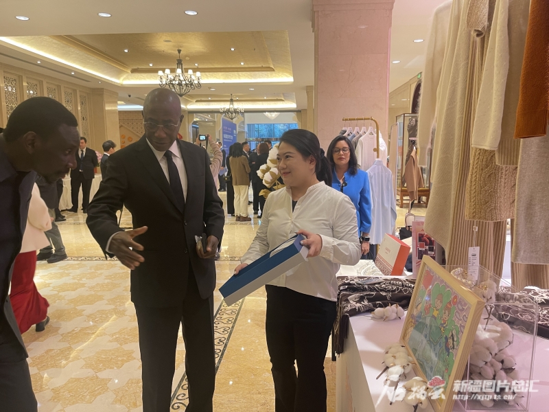 有關(guān)國家駐華使節(jié)對(duì)新疆特色產(chǎn)品展現(xiàn)出濃厚興趣。石榴云/新疆日?qǐng)?bào)記者 劉翔攝