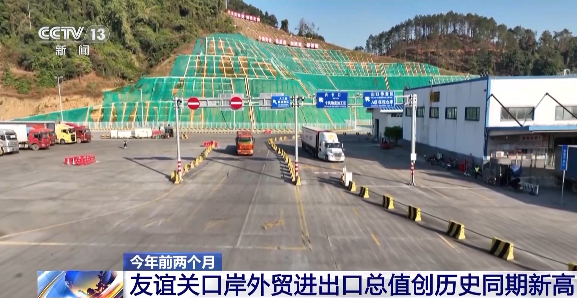 據(jù)友誼關(guān)海關(guān)統(tǒng)計(jì),今年前兩個(gè)月,經(jīng)友誼關(guān)口岸進(jìn)出口貨值728.9億元,同比增長10.9%,創(chuàng)歷史新高;進(jìn)出口貨運(yùn)量85萬噸,同比增長38.3%。進(jìn)出境車輛11.4萬輛,同比增長10.2%。