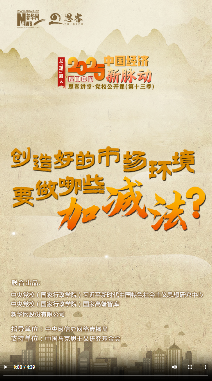 新一季“思客講堂·黨校公開課”《理響中國·以理服人|2025中國經(jīng)濟新脈動》,帶你讀懂2025年經(jīng)濟工作重點。2025年開年以來,杭州“六小龍”刷屏全網(wǎng),掀起科創(chuàng)熱潮。究其原因,離不開當?shù)亓己玫臓I商環(huán)境??梢哉f,好的市場環(huán)境,既是城市競爭的關鍵性“軟實力”,也是經(jīng)濟高質(zhì)量發(fā)展的“硬支撐”。創(chuàng)造好的市場環(huán)境要做哪些“加減法”?如何充分激發(fā)各類經(jīng)營主體活力?中央黨校(國家行政學院)經(jīng)濟學教研部講師王松對此進行解讀。
