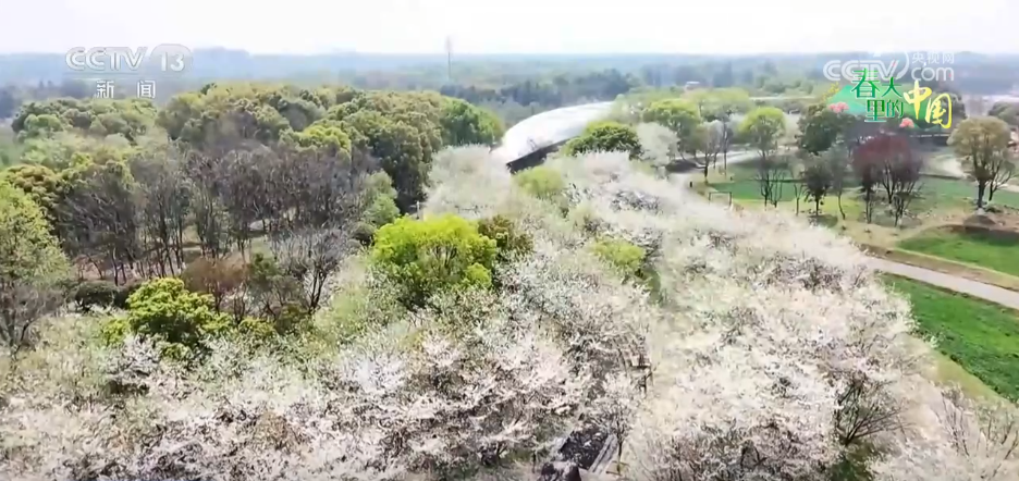 景區(qū)內(nèi)整排的櫻花綿延綻放,形成了一片粉白色的花海。微風(fēng)拂過,粉白的花瓣隨風(fēng)飄舞,游客們漫步在櫻花樹下,拿出手機(jī)、相機(jī),記錄這春日好風(fēng)景。
