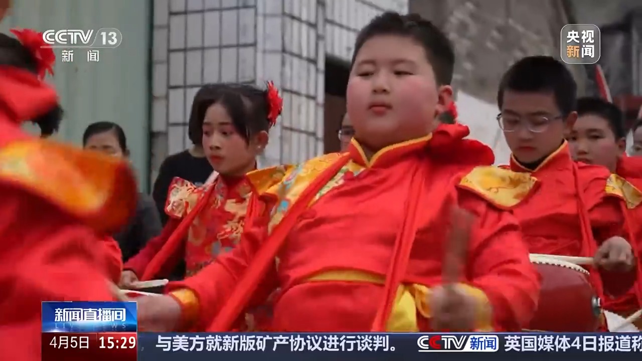 清明前夕,在浙江嘉興桐鄉(xiāng)市河山鎮(zhèn)八泉村的蠶俗廣場上,隨著蠶花鼓的敲響,一場傳統(tǒng)的“蠶花禮”儀式拉開了清明民俗會的帷幕。