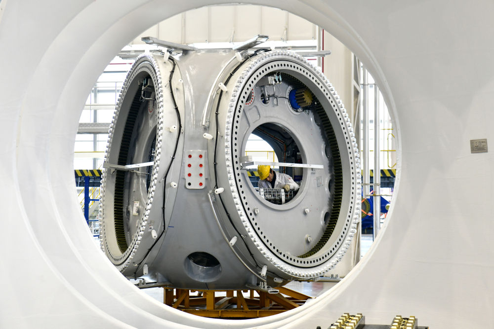 2月22日,在三一重能(日照)風電設備制造有限公司,工作人員在風電設備生產車間忙碌。新華社記者郭緒雷攝