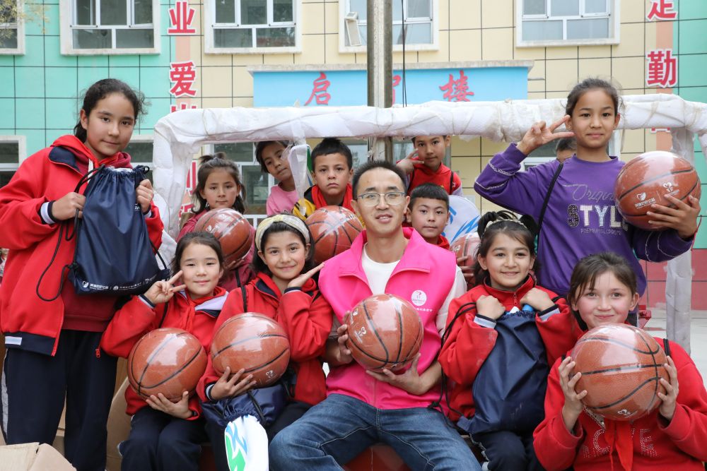 “上個學期曹永祺給我們學校聯(lián)系捐贈了一批體育器材?!卑⒖颂湛h皮拉勒鄉(xiāng)阿克提其村小學4年級2班班主任米娜瓦爾·巴拉提江說,“現(xiàn)在我們學校的學生基本上都認識他,學生也特別樂意拉著他一起玩?!?/p>
