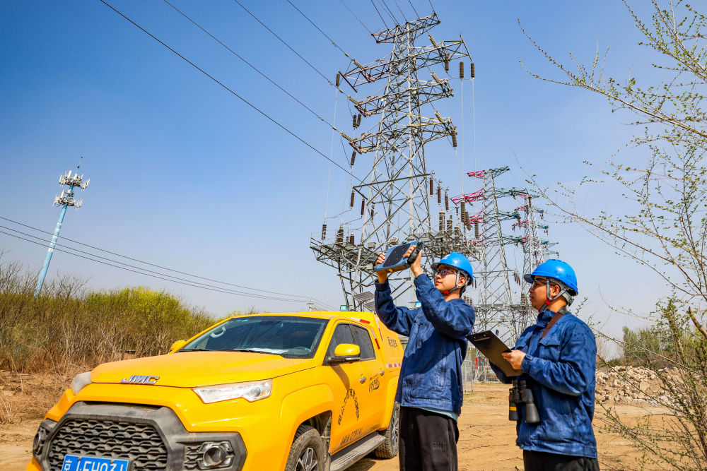 4月10日,國網(wǎng)北京昌平供電公司員工在陽坊鎮(zhèn)溫南路對重點線路開展特巡。(國網(wǎng)北京分公司供圖)