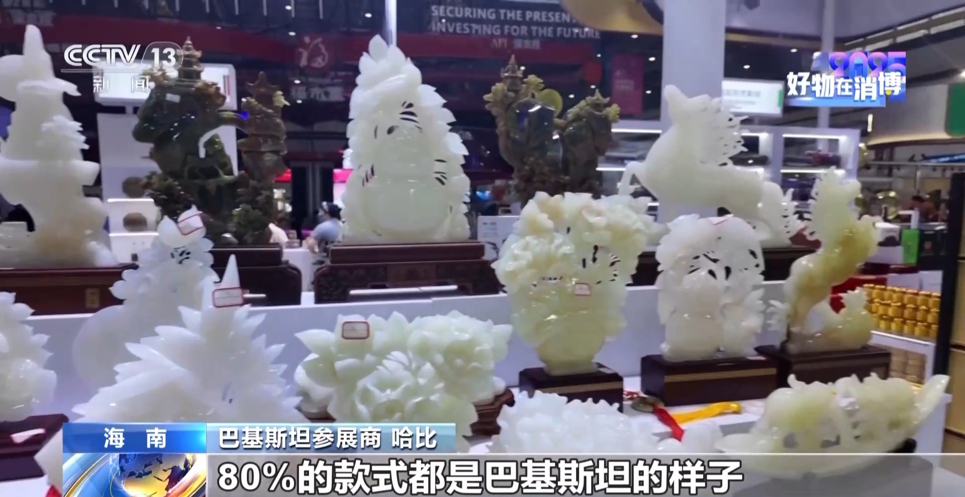 巴基斯坦參展商 哈比:我們去年參加消博會的時候,80%的款式都是巴基斯坦的風格,今年我們不一樣的是,我們好多的款式都有中國的文化。
