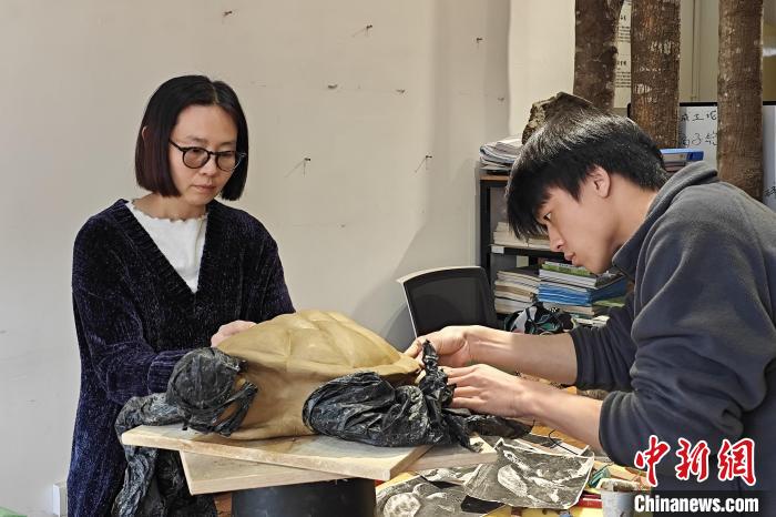 4月1日,李詩維(左一)帶領(lǐng)泉州工藝美術(shù)職業(yè)學院的學生創(chuàng)作陶瓷作品?!枪跇?攝