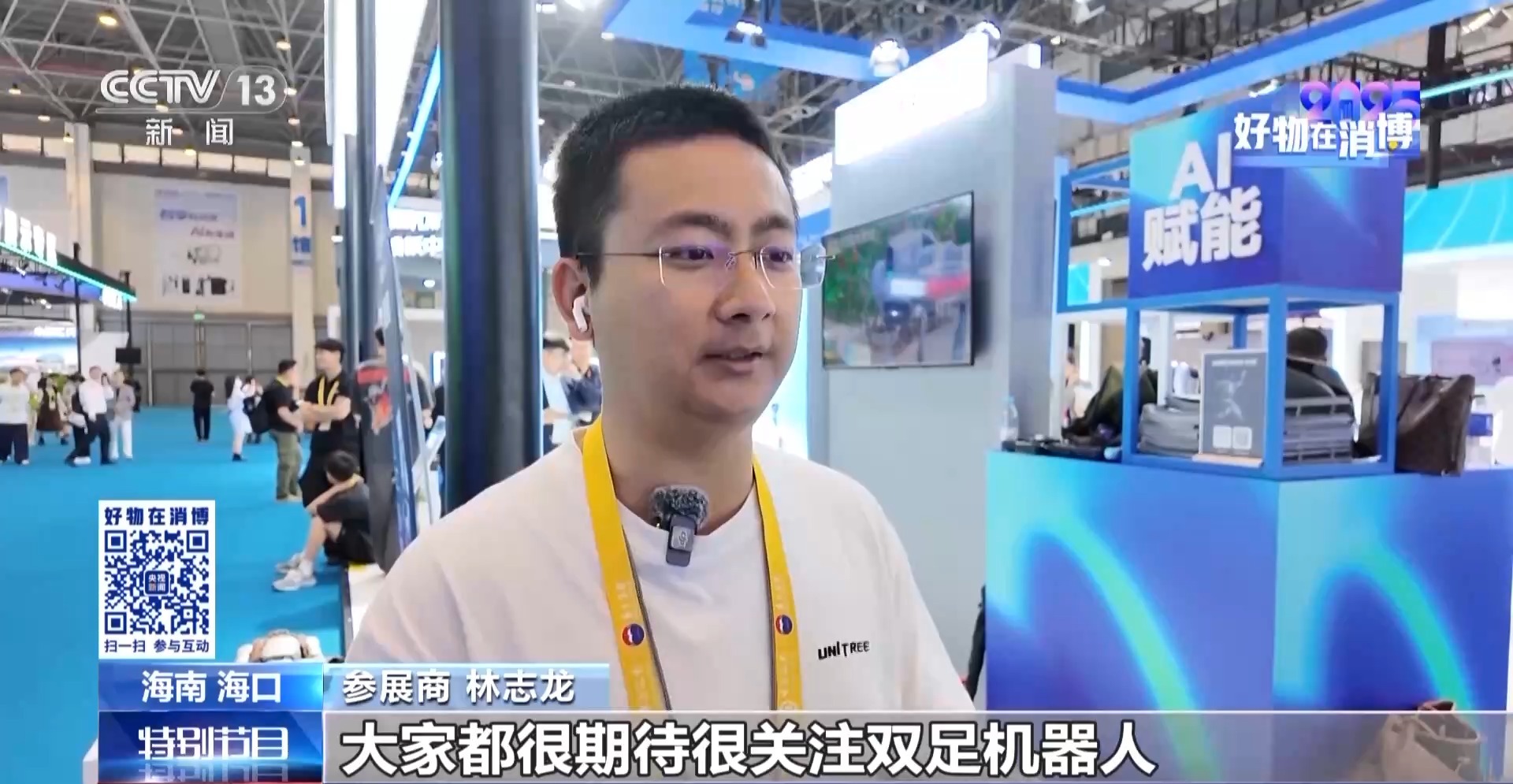 參展商 林志龍:大家都很期待很關(guān)注雙足機(jī)器人,這次來消博會(huì),也是想更加廣泛聽取消費(fèi)者對(duì)于產(chǎn)品的包括場(chǎng)景需求應(yīng)用的呼聲,然后可以針對(duì)性地再去做之后的產(chǎn)品的設(shè)計(jì)和規(guī)劃。