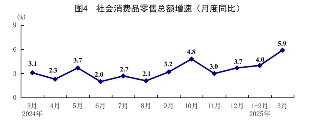 去年9月26日,中央政治局會議果斷部署了一攬子增量政策,對穩(wěn)定經(jīng)濟發(fā)揮了關鍵作用。今年我國宏觀政策更加積極有為,前期出臺的宏觀政策和持續(xù)擴容加碼的增量政策疊加發(fā)力,有效擴大了需求、促進了生產(chǎn)、激發(fā)了活力、增強了信心。3月份,社會消費品零售總額同比增長5.9%,增速創(chuàng)一年來新高。