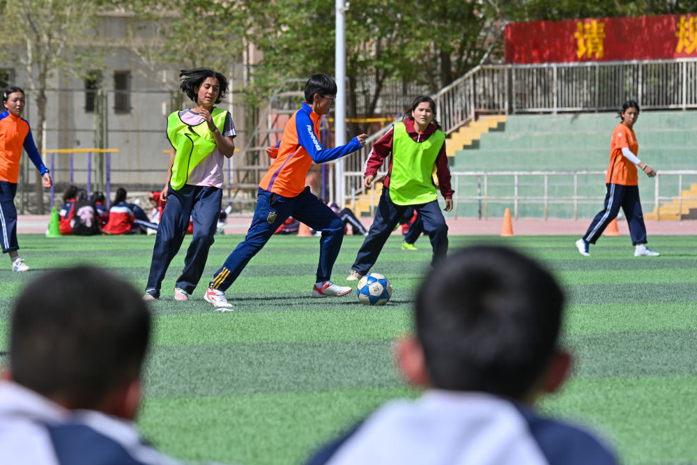 ↑4月10日,在阿圖什市硝魯克中學(xué),隊員們在進(jìn)行分組訓(xùn)練賽。新華社記者 徐宏巖 攝