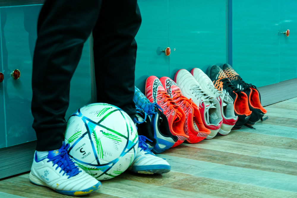 ↑4月10日,在阿圖什市硝魯克中學(xué)宿舍,一名球隊球員在擦拭自己心愛的球鞋。球員們的裝備由學(xué)校免費(fèi)發(fā)放。新華社記者 徐宏巖 攝