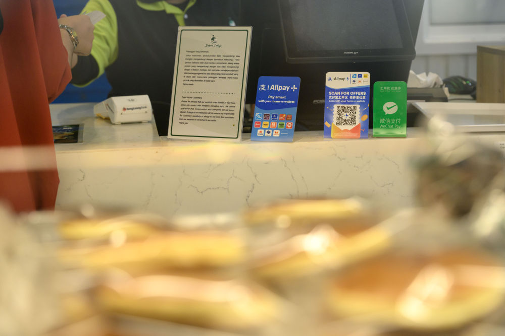 2025年4月10日,在馬來(lái)西亞吉隆坡,中國(guó)游客通過(guò)微信支付購(gòu)買(mǎi)商品。