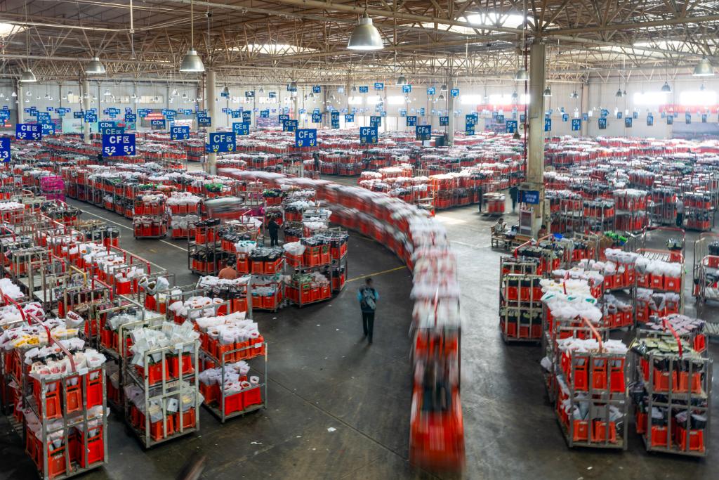 1月22日,臺車在昆明國際花卉拍賣交易中心內(nèi)轉(zhuǎn)運(yùn)鮮花。新華社記者 陳欣波 攝
