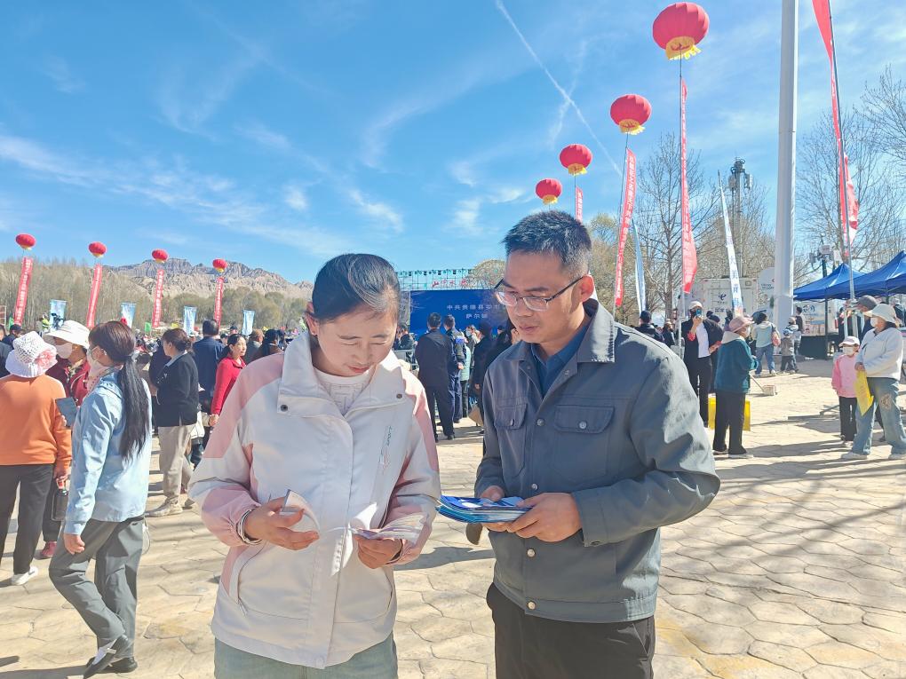 4月12日,蔡守文在招聘會現場給群眾講解就業(yè)政策。(受訪者供圖)