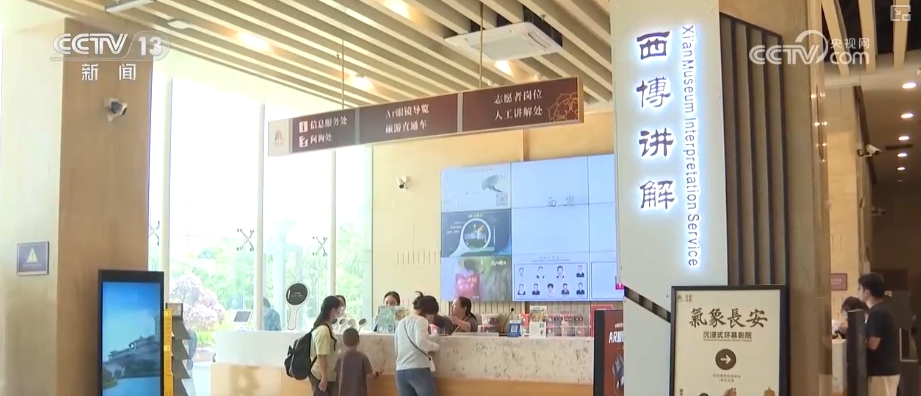 西安博物院公共服務(wù)部工作人員楊蕊伊介紹,“五一”期間,票務(wù)、安保、保潔人員增加了班次,同時(shí)也增設(shè)了大量的值班人員。在講解方面,講解人員、志愿者人員都增加了人數(shù),同時(shí)也增加了講解班次。他們?cè)谖鏖T、北門都設(shè)有游客服務(wù)中心,為廣大游客提供便利服務(wù)。針對(duì)于國際游客,他們有英文版的自助導(dǎo)覽機(jī)提供服務(wù)。