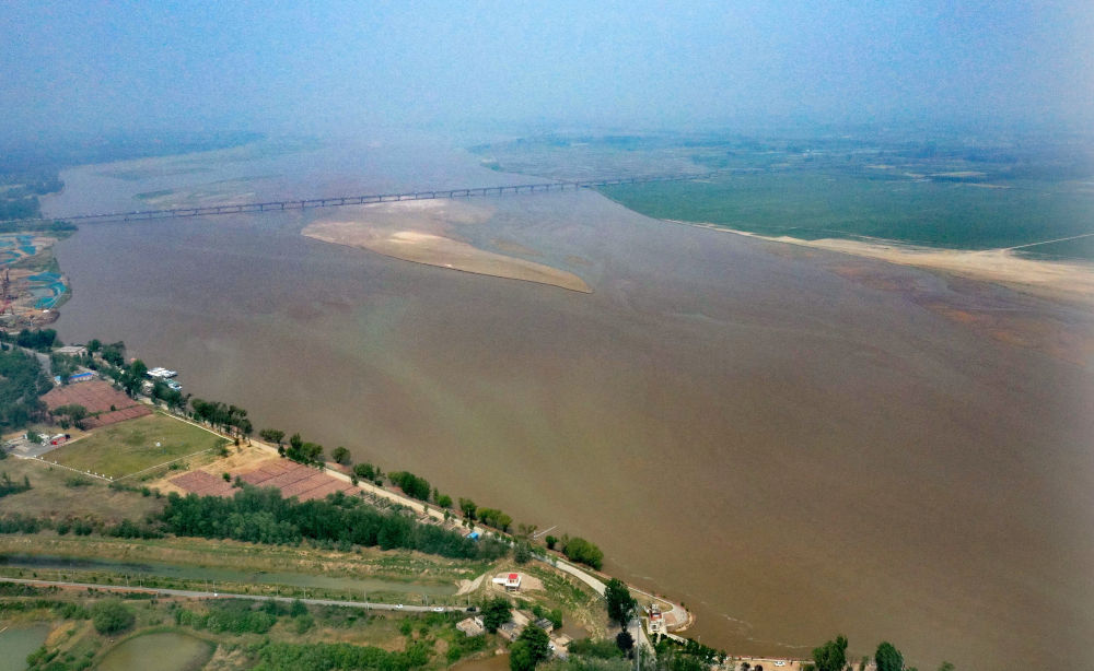 2025年4月27日拍攝的黃河鄭州段(無人機照片)。新華社記者 李嘉南 攝