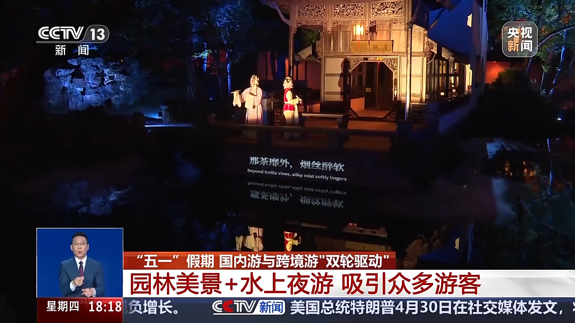“五一”期間,作為旅游熱門城市的蘇州也迎來(lái)了大客流。在最具江南韻味的蘇州老城區(qū),在全息投影等技術(shù)支持下,蘇州園林夜游、河畔人家水上游等項(xiàng)目受到游客歡迎。