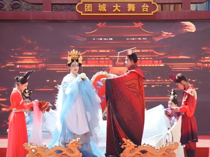 5月1日上午,新疆和田地區(qū)和田團(tuán)城、墨玉老城兩大景區(qū)同步舉行盛大的開城儀式。在和田團(tuán)城,和田市文工團(tuán)與新玉演藝集團(tuán)聯(lián)袂演繹新編沉浸式舞劇《西巡傳說》。作為開城儀式的重頭戲,舞劇《西巡傳說》以《山海經(jīng)》、《穆天子傳》及《竹書紀(jì)年》等歷史文獻(xiàn)記載作為參考,再現(xiàn)周穆王西巡的繁華盛景。徜徉在特色的民居建筑間,游客可偶遇身著熒光色改良艾德萊斯綢服飾走秀的青年模特,觀看到各鄉(xiāng)鎮(zhèn)街道創(chuàng)排的音樂舞蹈表演。異彩紛呈的巡游活動(dòng)讓烏魯木齊游客馬金玲稱贊:“這里讓人來(lái)了還想來(lái)!”