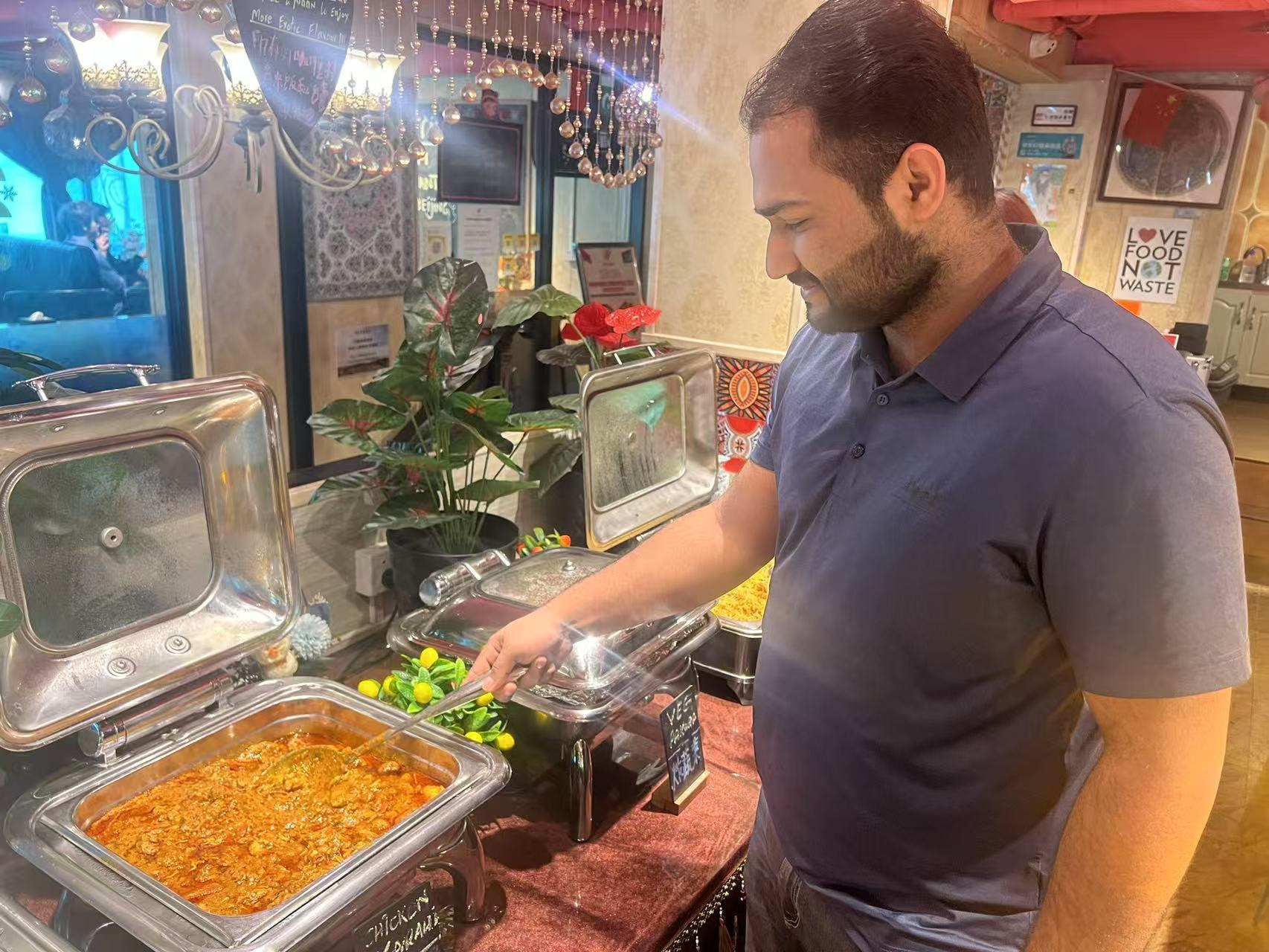 我們在中國的網(wǎng)絡(luò)平臺上都會發(fā)送電子優(yōu)惠券,也有一些排行榜把我們店放上去,所以中國消費者就會特意過來嘗試。我們有時也有學(xué)生折扣、會員卡的活動。得益于中國的‘過境免簽’政策,我們店里有了更多的外國游客,一些外國游客可能不會用電子優(yōu)惠券,我們也有一些實體店的優(yōu)惠活動。最近中國的一些‘促消費’活動我們也參加了,比如在美食節(jié)攤位上展示巴基斯坦美食,讓大家都嘗嘗。對于我們來說,不僅僅宣傳了我們的美食,還可以宣傳巴基斯坦文化。現(xiàn)在我們在成都剛開了一家新店,未來我們還想在西安也開一家。