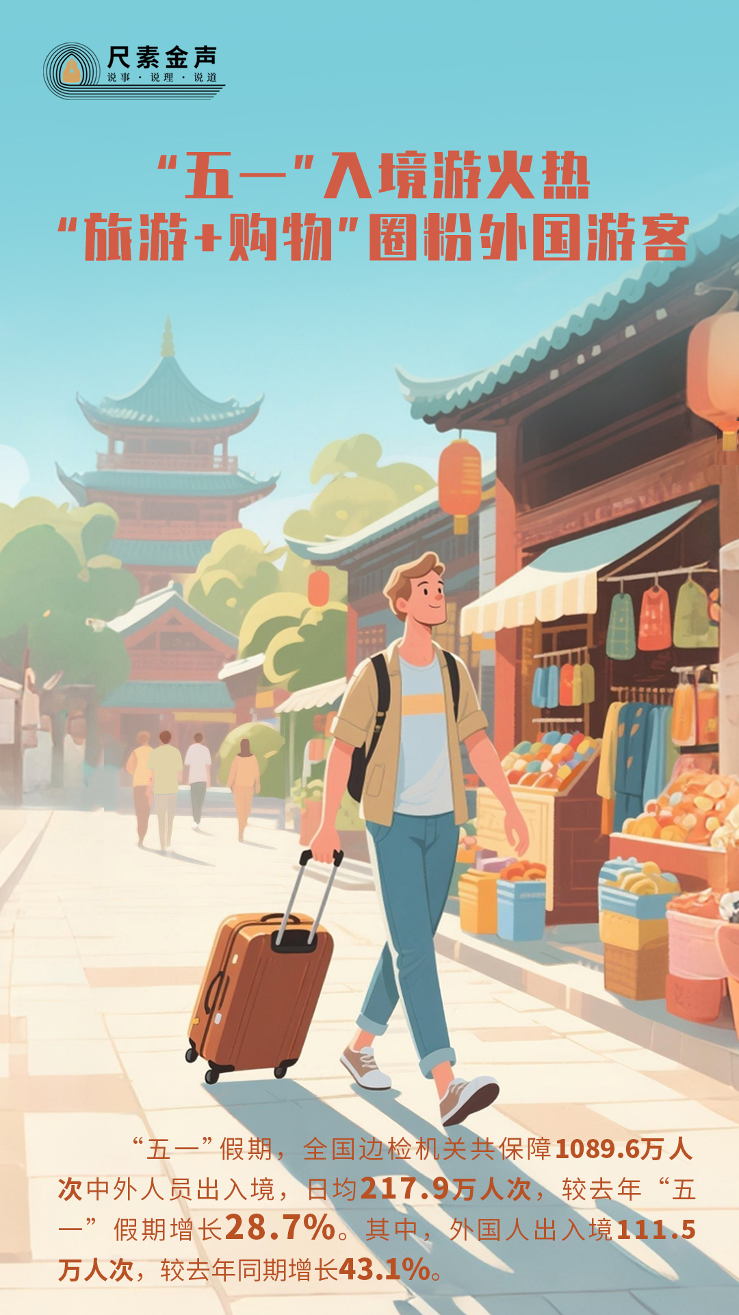 “五一”假期,文旅市場(chǎng)供需兩旺、欣欣向榮,入境游更是熱度高漲。國(guó)家移民管理局?jǐn)?shù)據(jù)顯示,這個(gè)假期,全國(guó)邊檢機(jī)關(guān)共保障1089.6萬(wàn)人次中外人員出入境,日均217.9萬(wàn)人次,較去年“五一”假期增長(zhǎng)28.7%。其中,外國(guó)人出入境111.5萬(wàn)人次,較去年同期增長(zhǎng)43.1%。四成多的高增速,從一個(gè)側(cè)面折射出中國(guó)在全球旅游市場(chǎng)的強(qiáng)大吸引力。