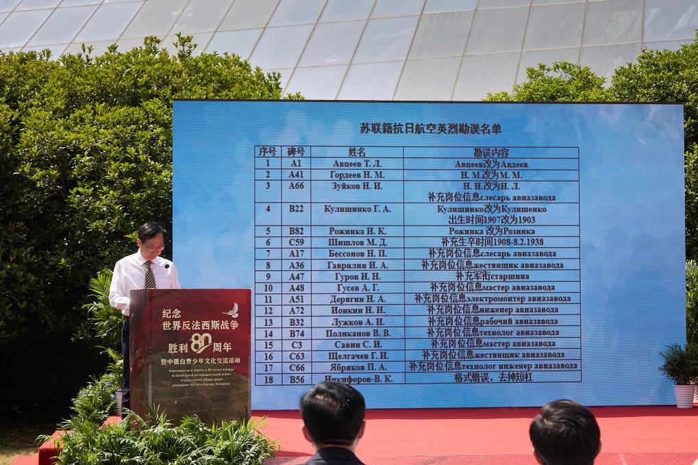 “我們期待與俄方相關(guān)部門、機構(gòu)和民間組織一道,尋找更多蘇聯(lián)籍抗日航空英烈史料,讓這些為了正義與和平而犧牲的年輕人的事跡,永遠記載在歷史的豐碑上?!毖ι徴f。