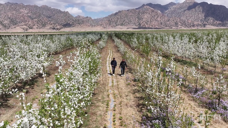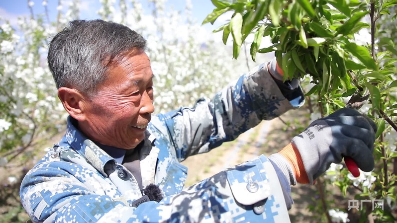步入內(nèi)蒙古巴彥淖爾市烏拉特前旗白彥花鎮(zhèn)塔漢其嘎查林果產(chǎn)業(yè)園,大片果樹迎來最美花期,微風(fēng)拂過,花香沁人心脾,果園里村民高忠標(biāo)正專注地修剪著果樹。“我今年60多歲了,在這里打工五六年了,一個月能掙五六千塊錢,挺好的。”