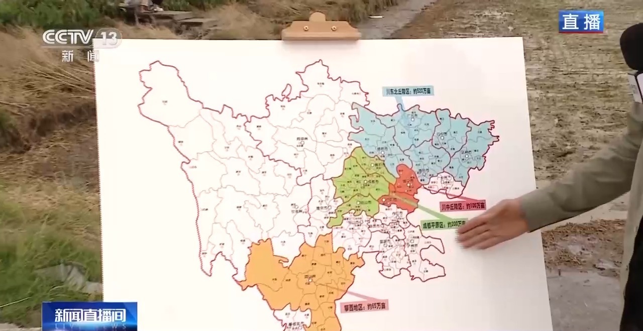 總臺央視記者 蔣樹林:這里是天府糧倉國家級現(xiàn)代農(nóng)業(yè)產(chǎn)業(yè)園,整個園區(qū)是90多平方公里,我所在的集中連片高標(biāo)準(zhǔn)農(nóng)田項目區(qū)有10萬畝之多。