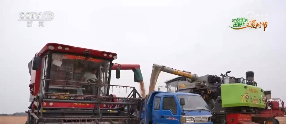 在河南南陽鄧州構(gòu)林鎮(zhèn)這處麥田,金黃的麥浪層層鋪開,麥穗 在陽光下熠熠生輝。4臺聯(lián)合收割機(jī)開足馬力穿梭在麥田間,伴隨著機(jī)器的轟鳴聲,成熟的小麥被快速收割、脫粒,金黃的麥粒從收割機(jī)的出糧口傾瀉而出,裝入一旁的運(yùn)輸車輛。