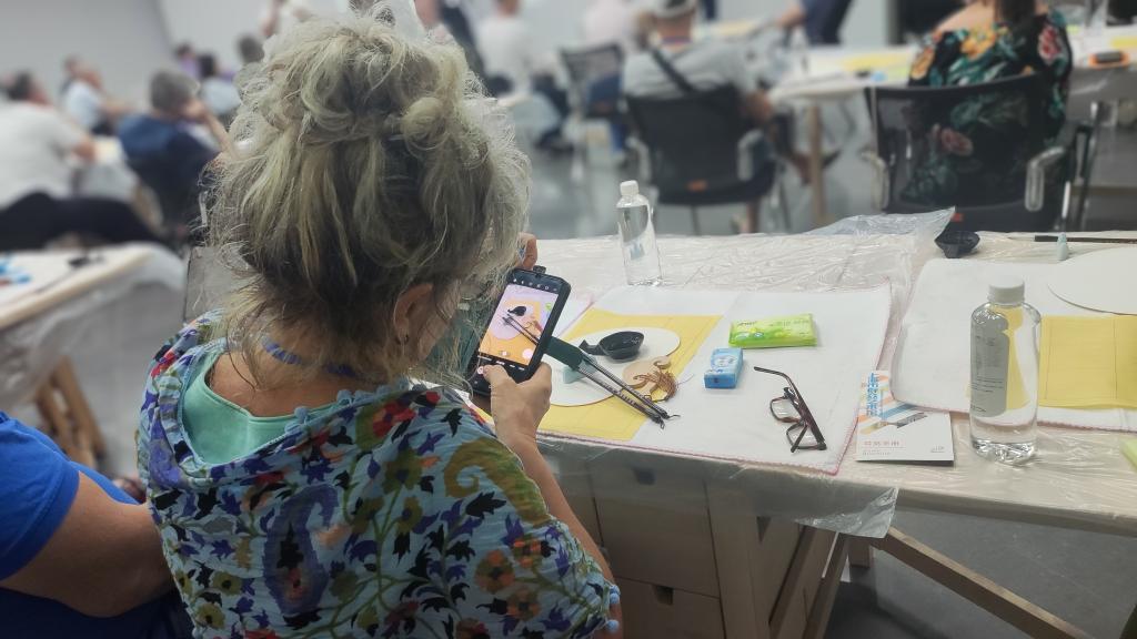 在上海市群眾藝術(shù)館,近60名波蘭團(tuán)隊(duì)游客跟隨書法指導(dǎo)老師了解中國“文房四寶”的制作方法,學(xué)習(xí)用毛筆書寫漢字,還參觀了最新攝影展及非遺市集,了解上海各級文化館服務(wù)內(nèi)容、工作職責(zé)。