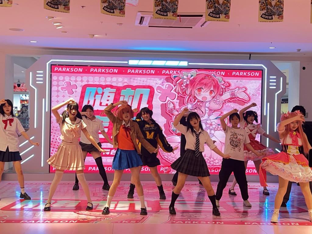 年輕人在百盛購(gòu)物中心內(nèi)參加隨機(jī)舞蹈。 曹帥奇 攝
