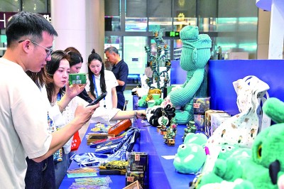 創(chuàng)意滿滿的文創(chuàng)產(chǎn)品帶來(lái)時(shí)尚潮流氣息——敦煌研究院的飛天系列絲巾、陜西歷史博物館的唐代仕女盲盒展現(xiàn)地域特色;在甘肅主題館,圓頭圓腦、憨態(tài)可掬的小神獸“蘭小五”成為引人駐足的“明星”;在“湖湘文創(chuàng)”展區(qū),竹片制作的扇子、飛盤、足球等文創(chuàng)產(chǎn)品新意十足;在文創(chuàng)中國(guó)展區(qū),數(shù)十座文化場(chǎng)館帶來(lái)了基于文物開(kāi)發(fā)的文創(chuàng)產(chǎn)品,觀眾紛紛參與文創(chuàng)盲盒、集章打卡等活動(dòng)。