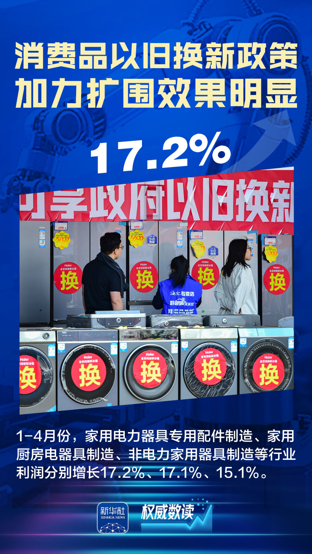 國家統(tǒng)計局、工信部等部門最新發(fā)布的數(shù)據(jù)顯示,今年前4個月,我國工業(yè)企業(yè)利潤增長加快、工業(yè)投資保持增長、裝備制造業(yè)引領作用突出、“兩新”政策效應持續(xù)顯現(xiàn)……一系列數(shù)據(jù),充分展現(xiàn)出我國工業(yè)經(jīng)濟的強大韌性和抗沖擊能力。