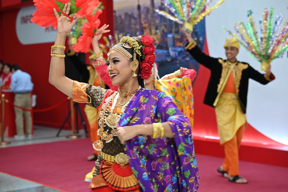 5月27日,馬來西亞參展人員在展會現(xiàn)場為觀眾帶來傳統(tǒng)舞蹈表演。新華社記者 陳愛平 攝