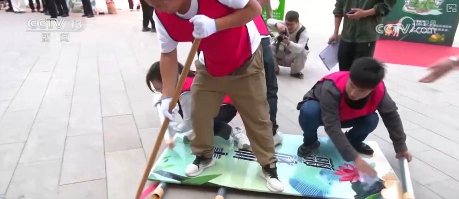 活動現(xiàn)場,最引人注目的當(dāng)屬充氣龍舟競速賽。大家以腿為槳,以手為舵,考驗(yàn)團(tuán)隊(duì)的配合與默契。在劃旱船環(huán)節(jié),四人一組,兩人站著撐槳,在其余兩人的配合下將平板向前移動。