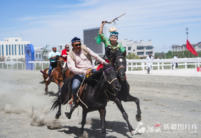 5月31日,中國·新疆第五屆駱駝產業(yè)展暨全疆賽馬大會在木壘哈薩克自治縣激情啟幕?;顒蝇F場在進行“姑娘追”表演。常誼誼 攝