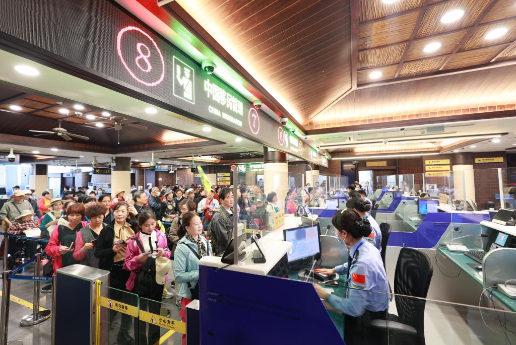 1月3日,在三亞鳳凰島國際郵輪港口岸,邊檢部門為郵輪旅客辦理通關(guān)手續(xù)。(楊冠宇 攝)