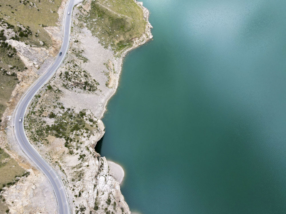 ↑這是2021年6月20日拍攝的車輛行駛在新疆獨(dú)庫公路上(無人機(jī)照片)