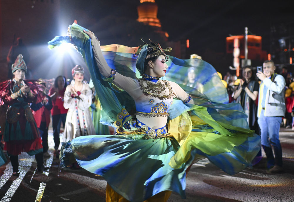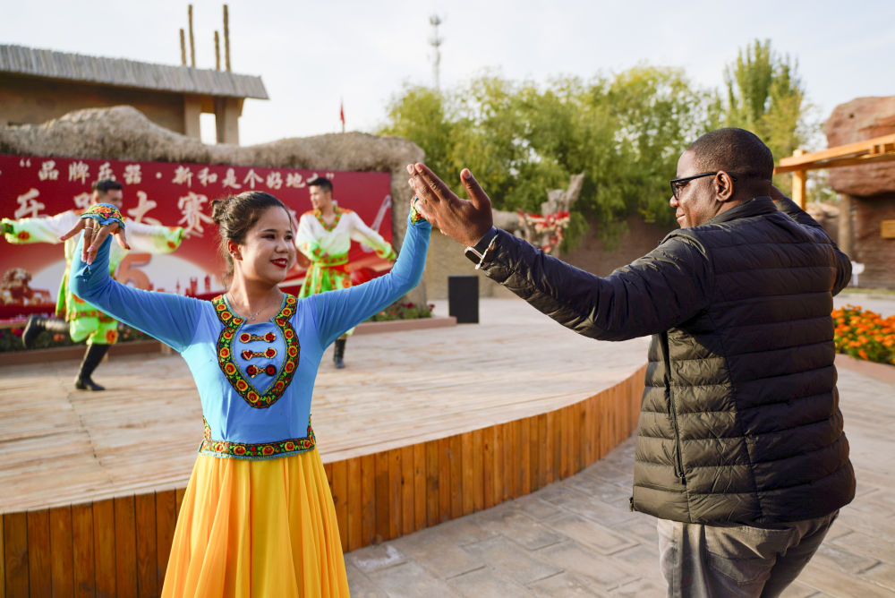 2023年環(huán)塔拉力賽參賽代表參加旅游展示活動(dòng)。新華社記者 胡虎虎 攝