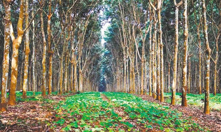 在距離西雙版納傣族自治州景洪市環(huán)城北路約1公里處,記者見(jiàn)到云南省熱帶作物科學(xué)研究所占地1054畝的環(huán)境友好型生態(tài)膠園千畝試驗(yàn)示范基地。這里將橡膠樹種植行距從傳統(tǒng)8米擴(kuò)大到20米以上,在橡膠樹間套種上述經(jīng)濟(jì)作物。如此布局,即使橡膠行情不好,經(jīng)過(guò)精心篩選套種的其他經(jīng)濟(jì)作物也能取得不錯(cuò)的經(jīng)濟(jì)效益。