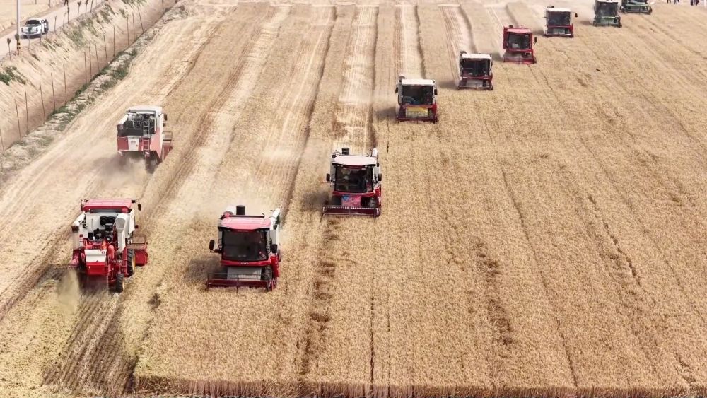 眼下,多地進(jìn)入夏收、夏種、夏管“三夏”農(nóng)忙期,全國(guó)“三夏”大規(guī)模小麥機(jī)收全面展開(kāi)。收割機(jī)開(kāi)足馬力馳騁在金色的麥田中,一排排小麥被整齊地切割、脫?!瓘V袤農(nóng)田一片繁忙景象。