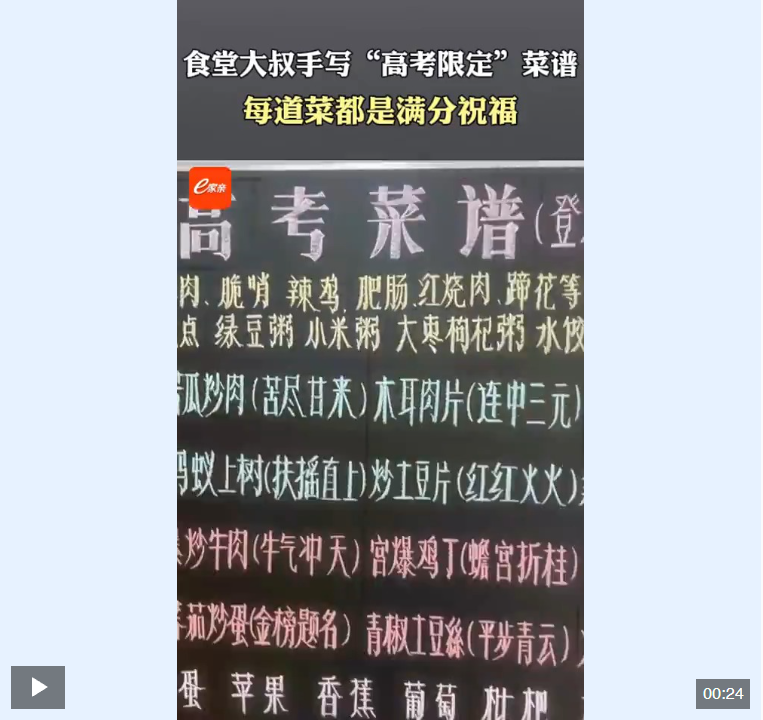 食堂工作人員手寫“高考限定”菜譜