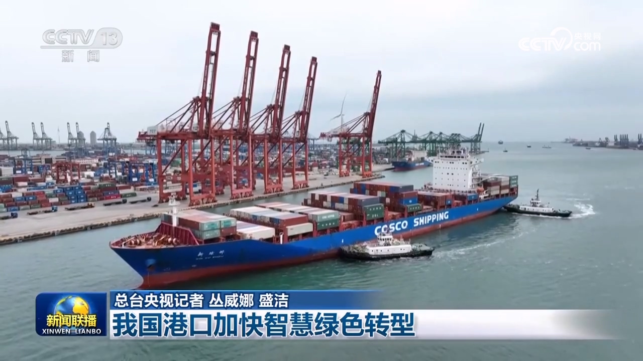交通運(yùn)輸部數(shù)據(jù)顯示,今年1—4月,我國(guó)港口完成集裝箱吞吐量1.1億標(biāo)箱,同比增長(zhǎng)7.9%。貨物運(yùn)輸高效流轉(zhuǎn),綠色低碳設(shè)施設(shè)備也在推動(dòng)港口可持續(xù)發(fā)展。在天津港,這艘集裝箱船剛剛靠泊,岸電系統(tǒng)就開(kāi)始為船舶供電,大大降低了靠港期間的污染物排放。