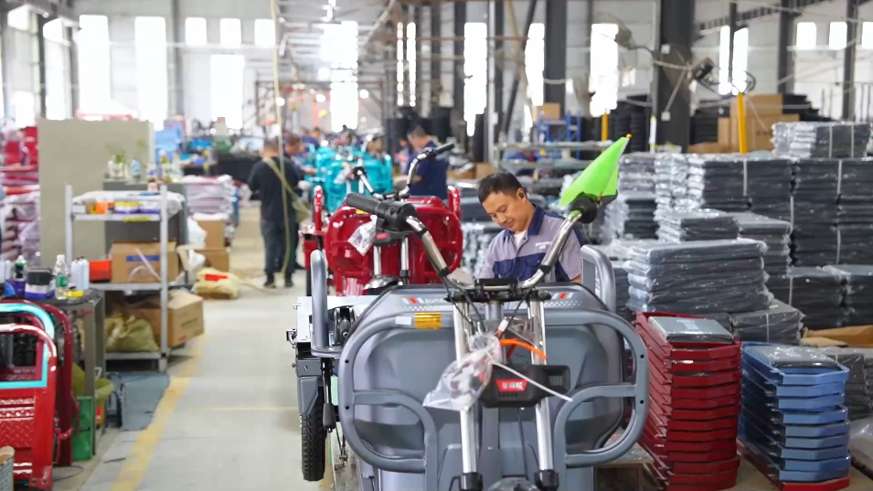 在四川眉山天府新區(qū),記者在雙勝新能源車業(yè)有限責(zé)任公司看到,工人們正緊鑼密鼓組裝一批即將發(fā)往非洲、東南亞的電動(dòng)三輪車。