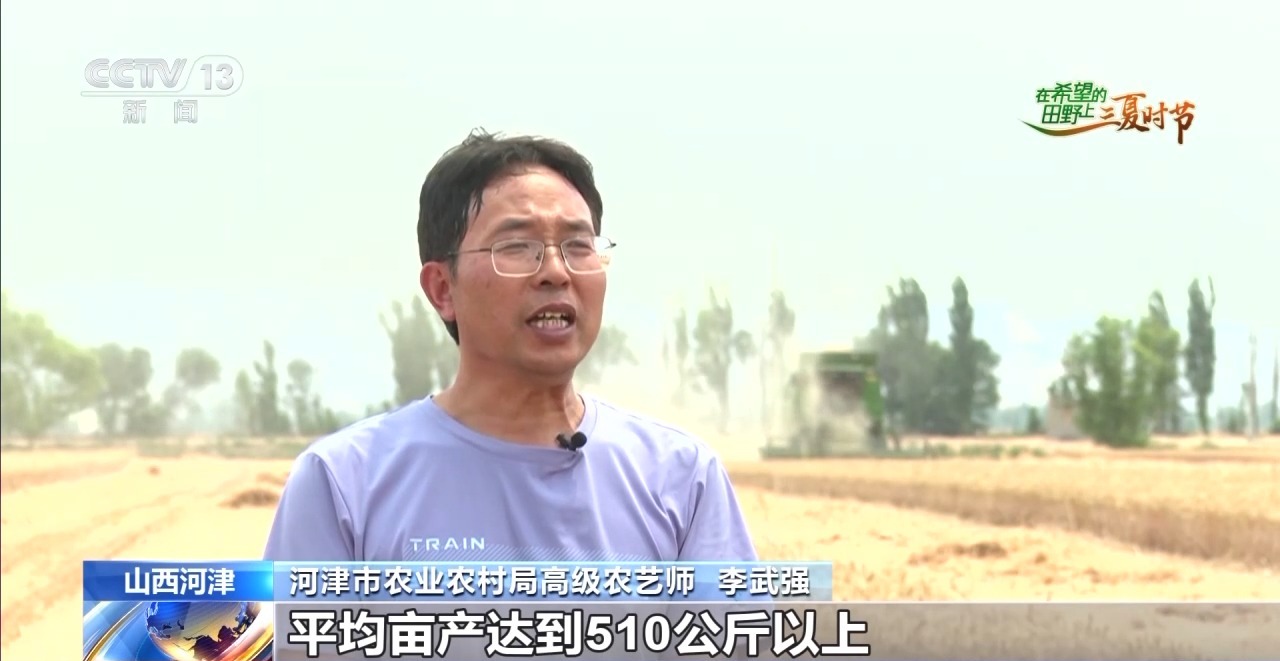 河津市農業(yè)農村局高級農藝師 李武強:示范基地的小麥估計一周左右全部收完,平均畝產達到510公斤以上,較去年增產8%。下一步,將持續(xù)加大實用技術應用,努力實現‘收到手’到‘收得好’轉變。