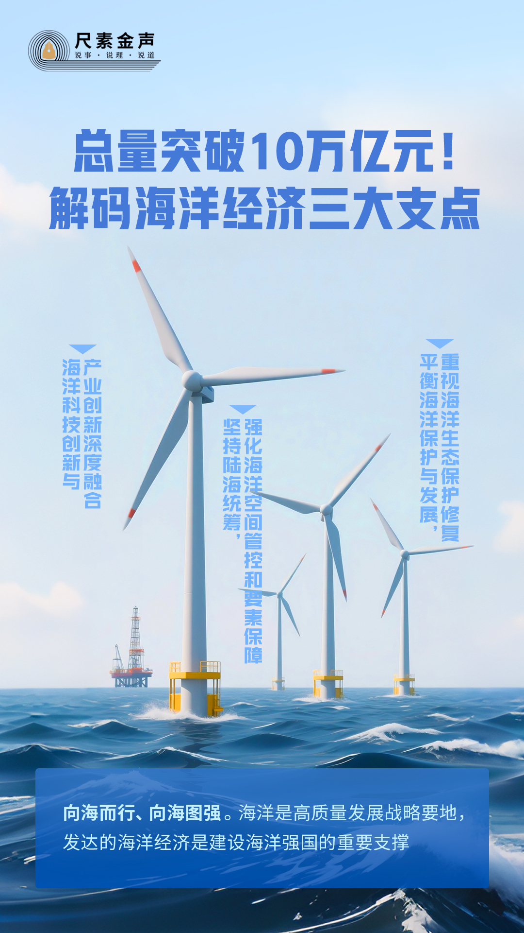 海風(fēng)陣陣吹動白色風(fēng)機(jī),用“綠電”點(diǎn)亮萬家燈火;海水波濤翻滾、潮起潮落,將汩汩動能送至千家萬戶;“藍(lán)色糧倉”日漸充實(shí),“中國飯碗”愈加豐富;深海深淵有數(shù)不盡的礦產(chǎn)、油氣和生物基因資源亟待開發(fā)……從單純的魚鹽之利、舟楫之便,到如今向大海要食物、要綠電、要淡水,海洋經(jīng)濟(jì)正成為拉動國民經(jīng)濟(jì)增長的重要引擎。