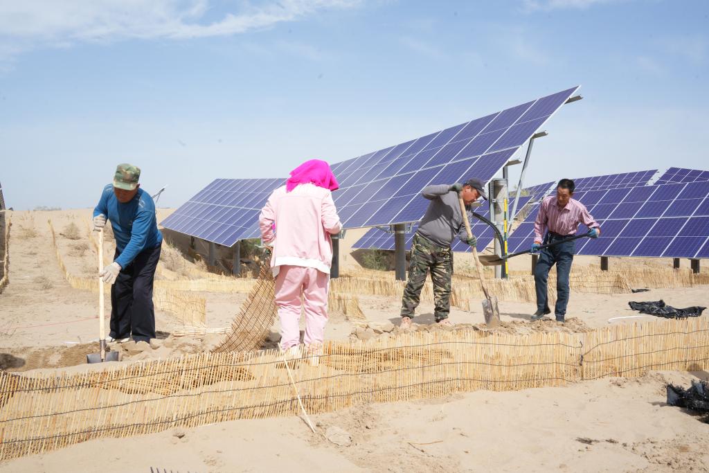 據(jù)介紹,該項目預(yù)計于6月底具備并網(wǎng)發(fā)電條件,投產(chǎn)運行后年發(fā)電量達3.6億千瓦時,配套治理沙地2.4萬畝。新華林場場長賀鑫說:“在開展‘三北’工程攻堅戰(zhàn)以來,我們采取‘以工代賑’形式,組織周邊村民參與光伏項目建設(shè)、林草種植等全流程作業(yè),參與農(nóng)民的人數(shù)超過2000人?!?/p>