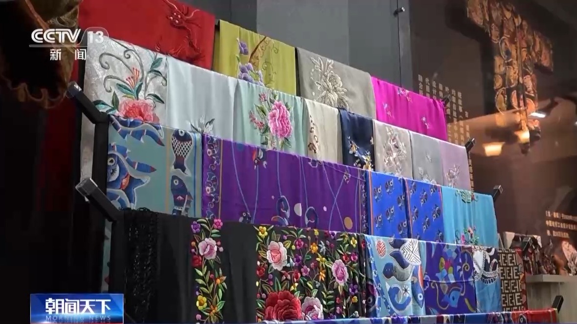 黔東南州級(jí)非物質(zhì)文化遺產(chǎn)項(xiàng)目苗繡代表性傳承人 石傳英:我們現(xiàn)在跟國際的大牌合作,它都是用上我們傳統(tǒng)的色彩、傳統(tǒng)的紋樣來跟現(xiàn)代語言相結(jié)合,開發(fā)一些時(shí)尚單品,服裝、手環(huán)、耳環(huán)、包包等等。