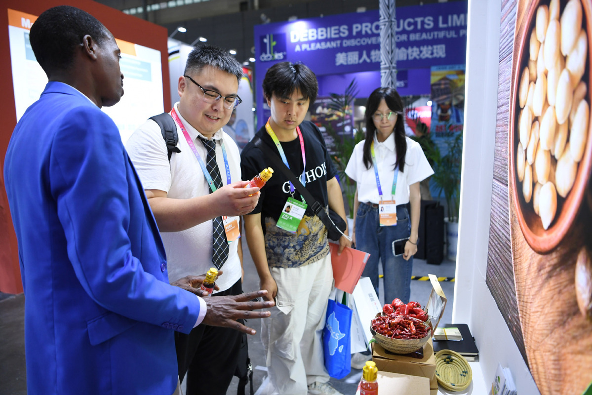 6月12日,在長沙國際會展中心,參展商推介盧旺達(dá)辣椒產(chǎn)品。當(dāng)日,第四屆中國-非洲經(jīng)貿(mào)博覽會在長沙舉行。(圖片來源:新華社)