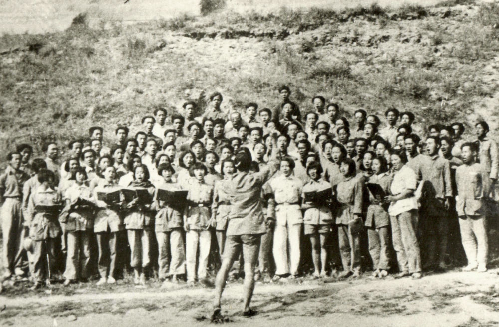 這是1939年魯藝學(xué)員排練《黃河大合唱》的資料照片。新華社發(fā)(延安文藝紀(jì)念館供圖)
