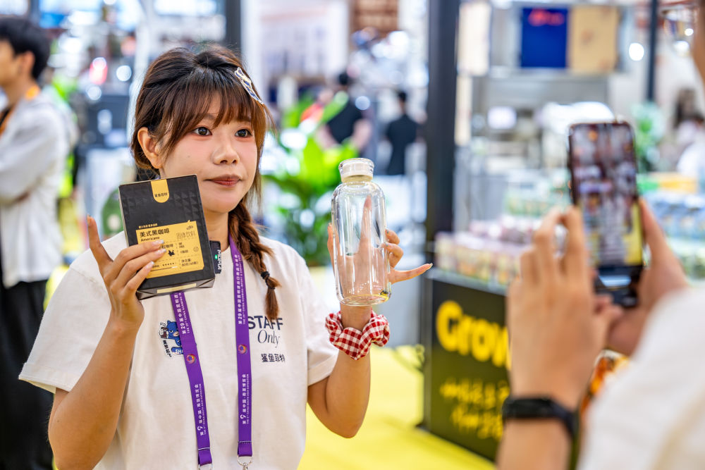 6月19日,一名參展商在第9屆中國—南亞博覽會(huì)咖啡產(chǎn)業(yè)館直播推介云南小??Х?。新華社記者胡超 攝