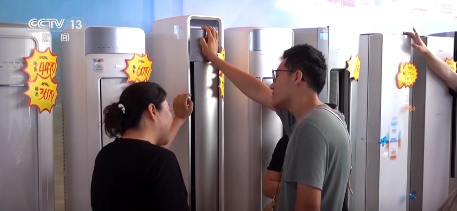 店主介紹,當(dāng)前消費者“以舊換新”需求旺盛。6月份以來,店內(nèi)銷售量環(huán)比增長了33%,空調(diào)、冰箱等清涼家電成為消費主力。